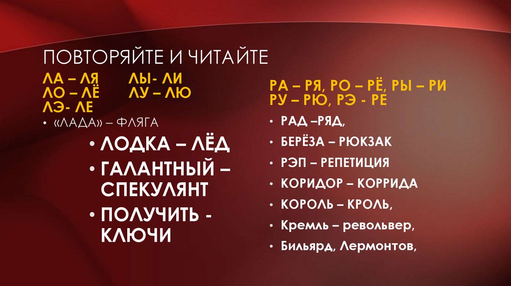 ПОВТОРЯЙТЕ И ЧИТАЙТЕЛА – ЛЯ