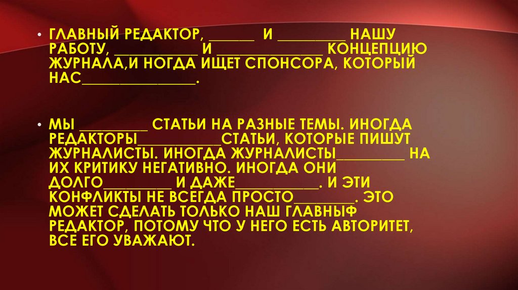 ЗНАЮТ РУССКИЙ ЯЗЫК И ЖУРНАЛИСТЫ ЧАСТО У НИХ ___________СЯ.НУ А РЕДАКТОРЫ ________ВСЁ, ЧТО ПИШУТ