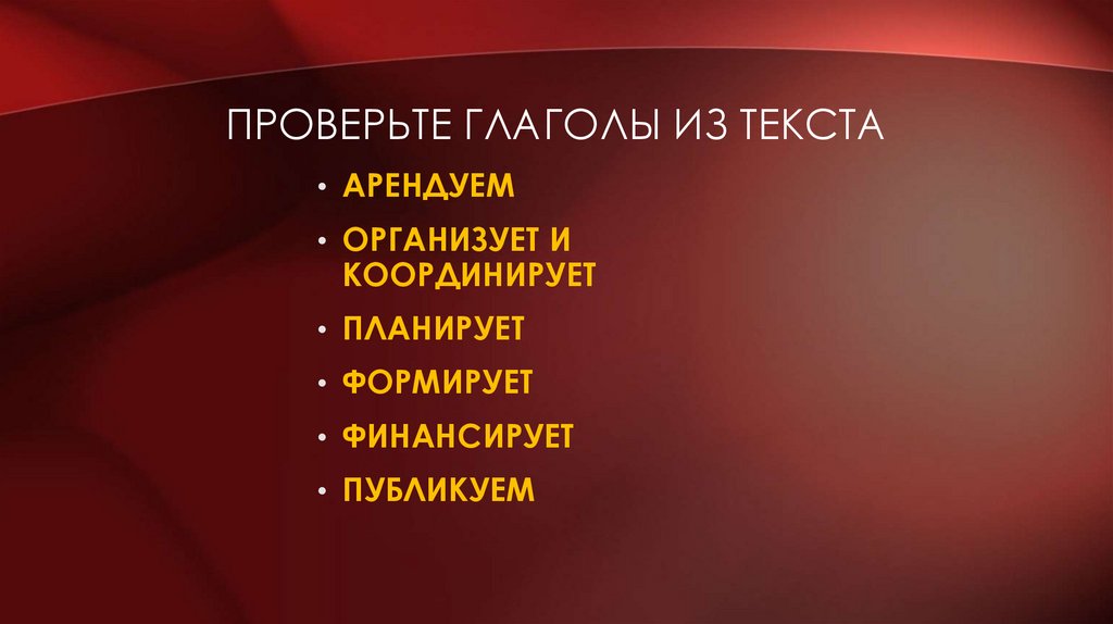 ПРОВЕРЬТЕ ГЛАГОЛЫ ИЗ ТЕКСТА• АРЕНДУЕМ