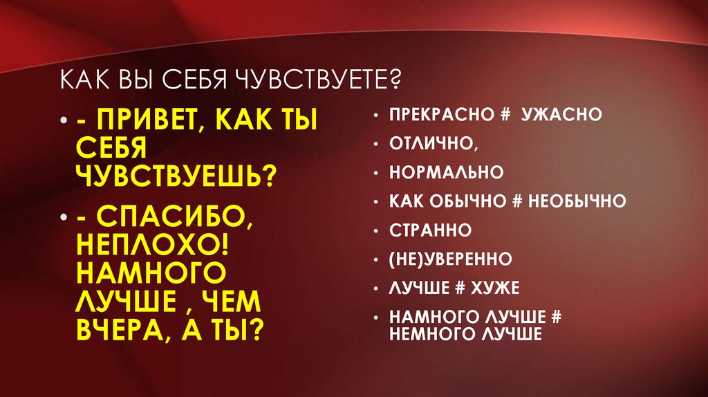 КАК ВЫ СЕБЯ ЧУВСТВУЕТЕ?• - ПРИВЕТ, КАК ТЫ