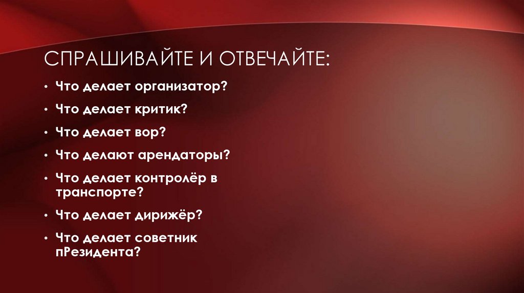 СПРАШИВАЙТЕ И ОТВЕЧАЙТЕ:• Что делает организатор?