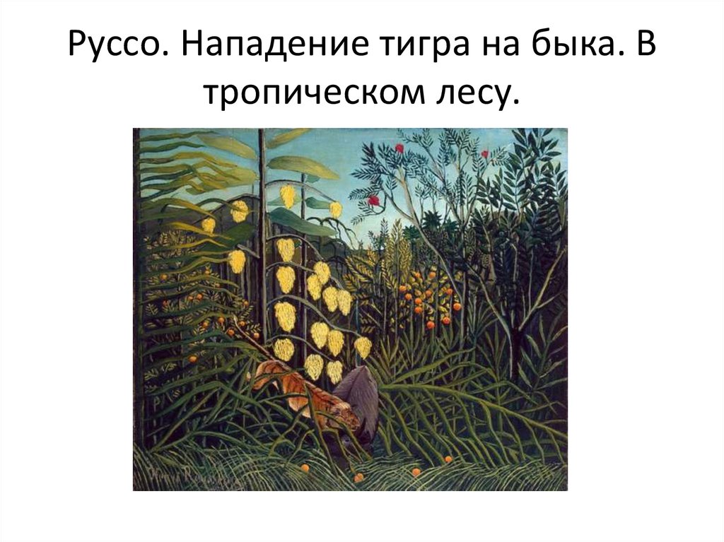 Руссо. Нападение тигра на быка. Втропическом лесу.