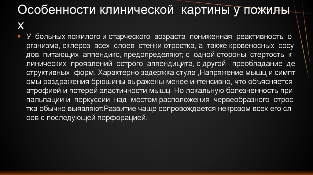 рганизма, склероз всех слоев стенки отростка, а также кровеносных сосу
