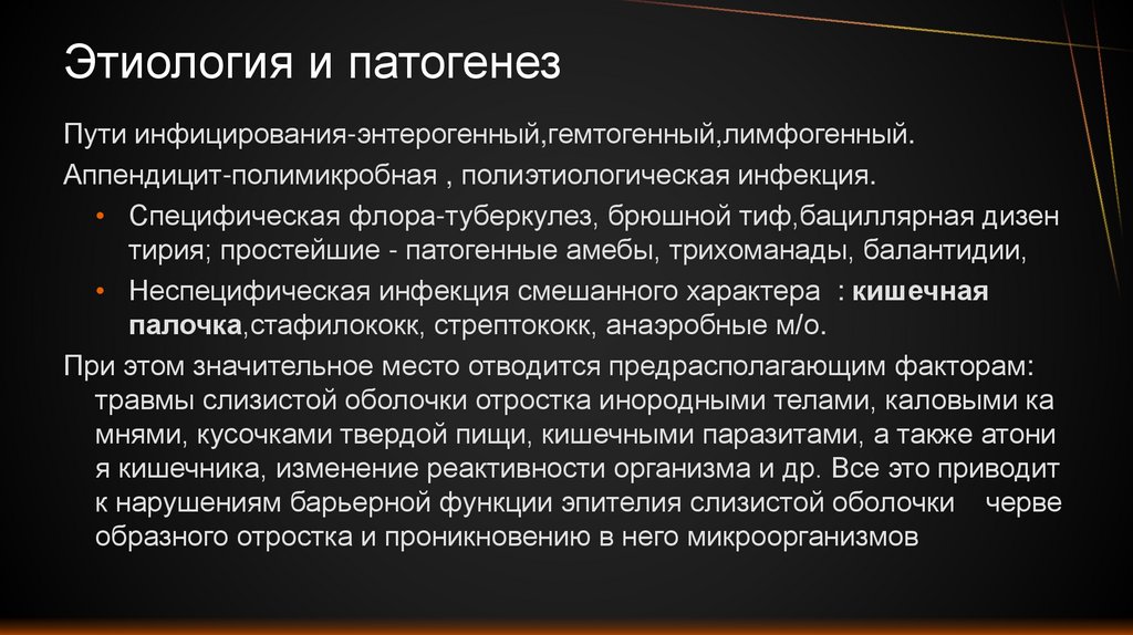 Аппендицит-полимикробная , полиэтиологическая инфекция.