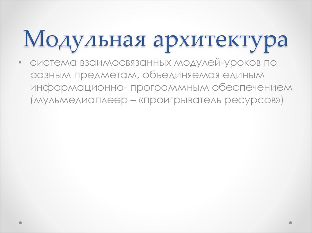 Модульная архитектура• система взаимосвязанных модулей-уроков по