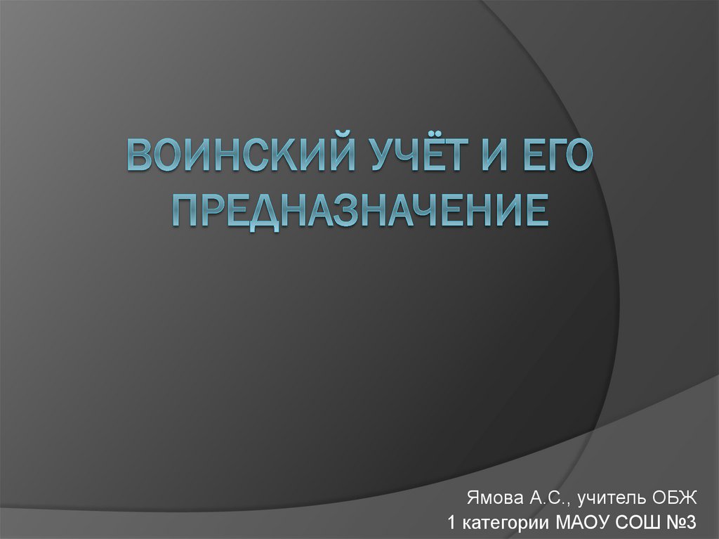 Ямова А.С., учитель ОБЖ1 категории МАОУ СОШ №3