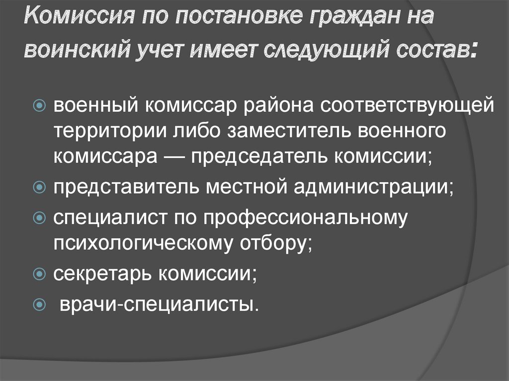 Комиссия по постановке граждан навоинский учет имеет следующий состав: