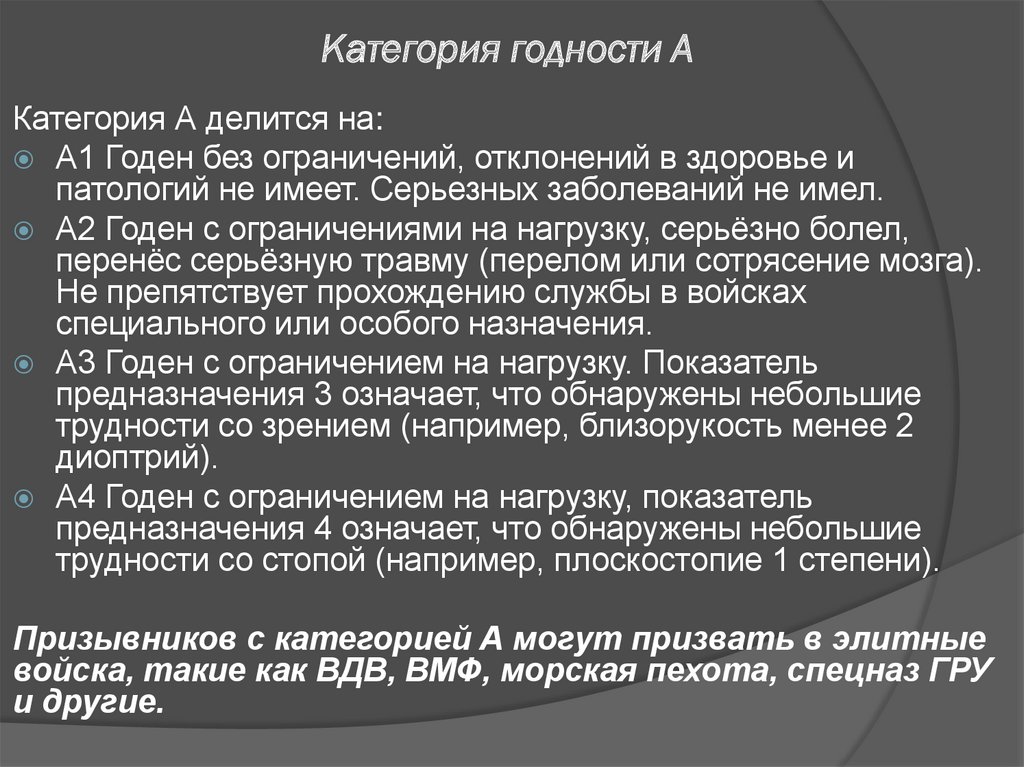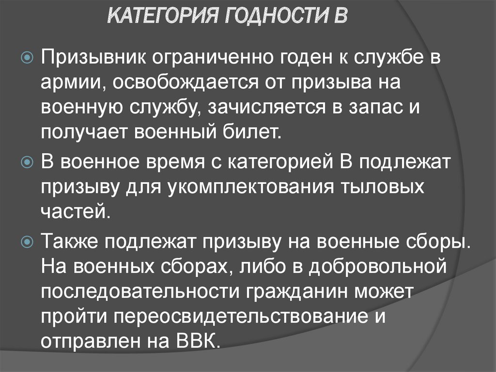 КАТЕГОРИЯ ГОДНОСТИ ВПризывник ограниченно годен к службе в