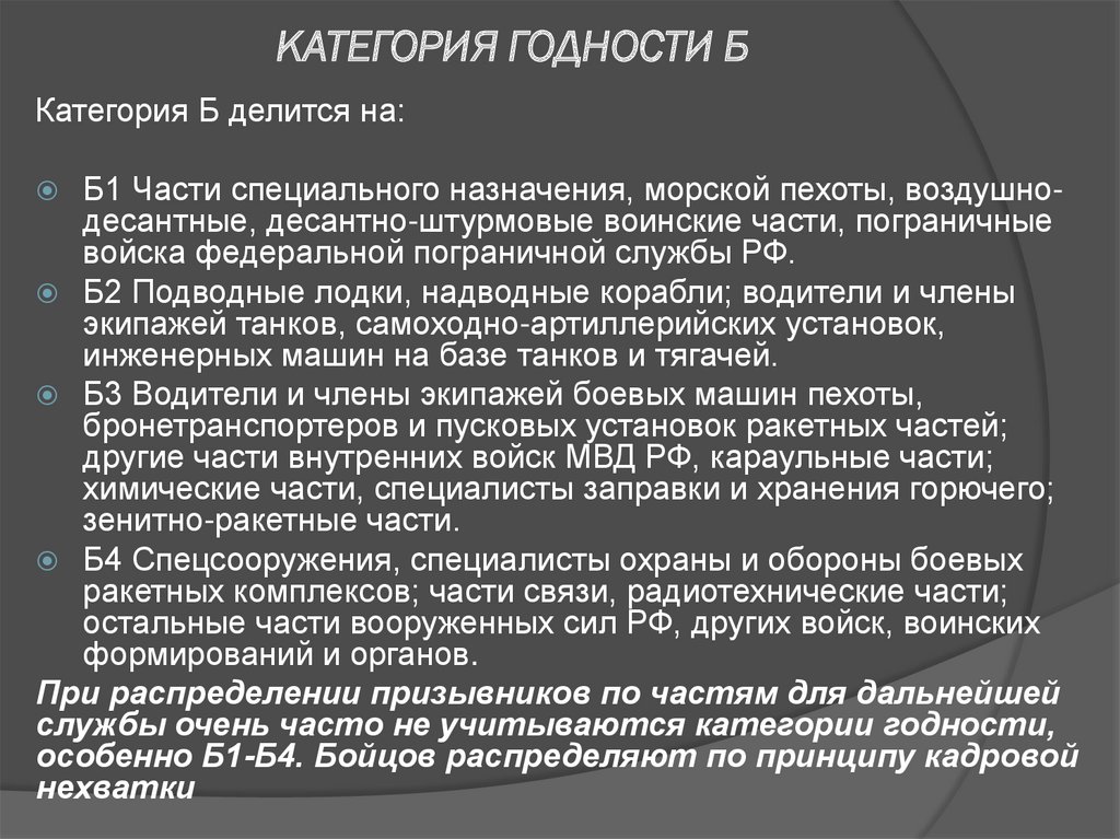 КАТЕГОРИЯ ГОДНОСТИ БКатегория Б делится на: