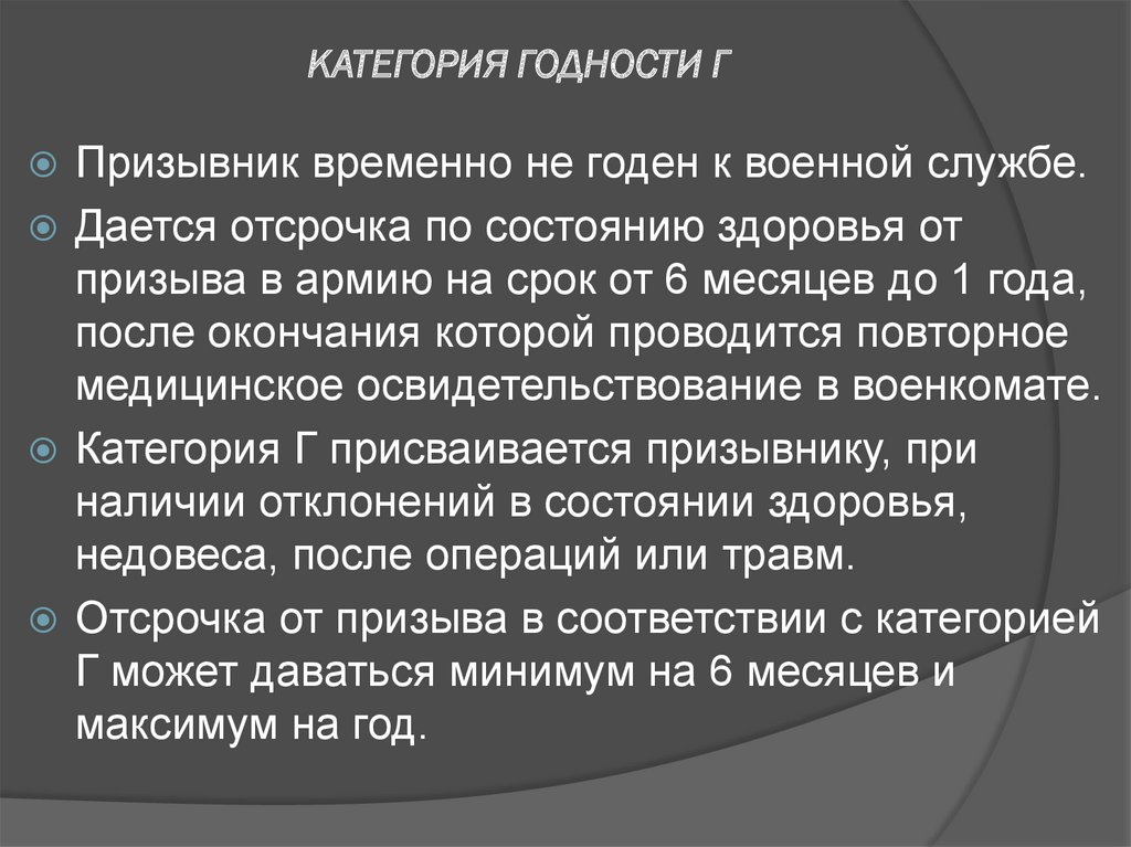КАТЕГОРИЯ ГОДНОСТИ ГПризывник временно не годен к военной службе.