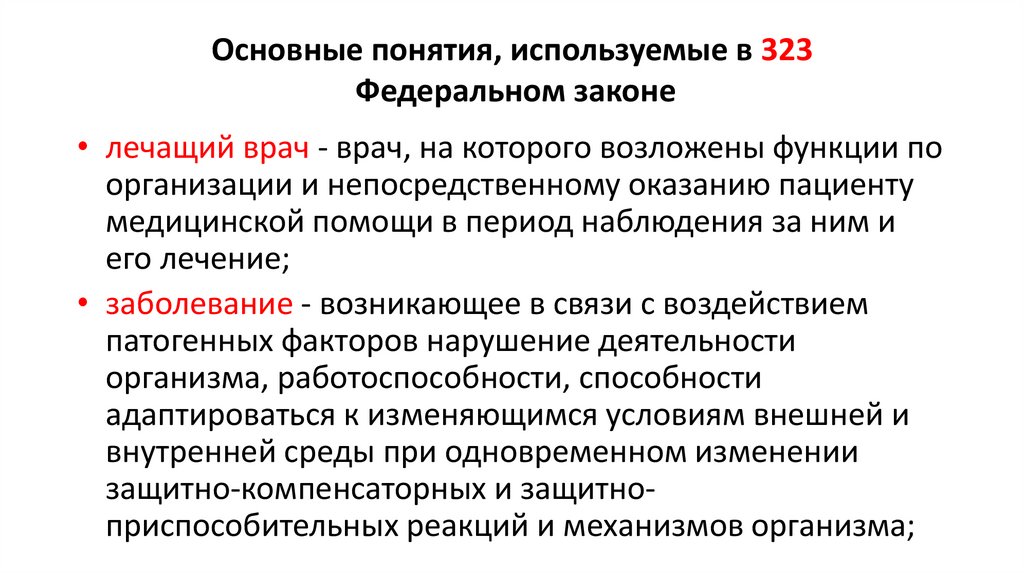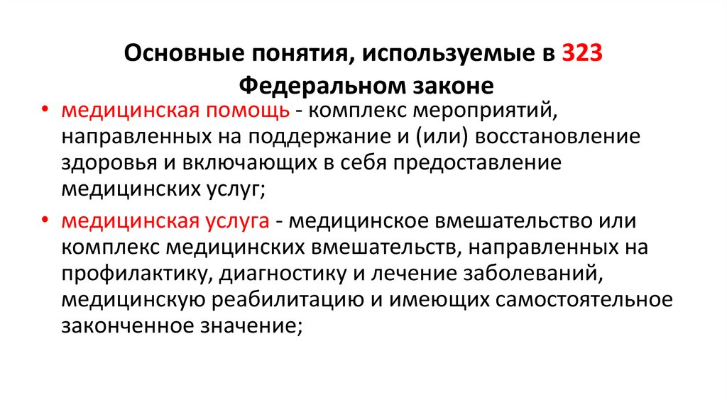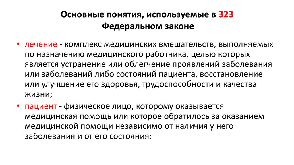 • лечение - комплекс медицинских вмешательств, выполняемых