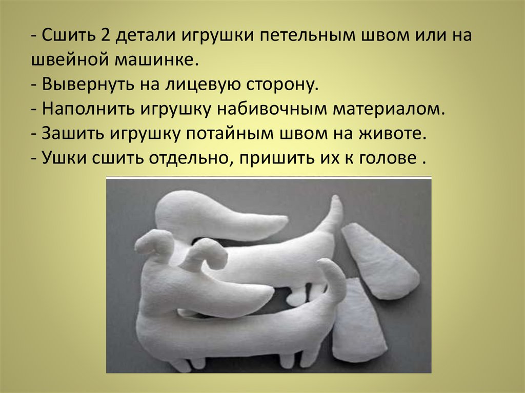 - Сшить 2 детали игрушки петельным швом или нашвейной машинке.