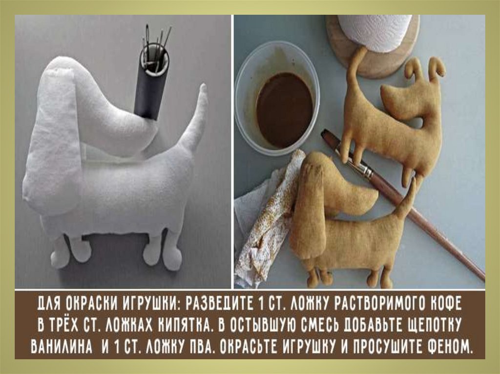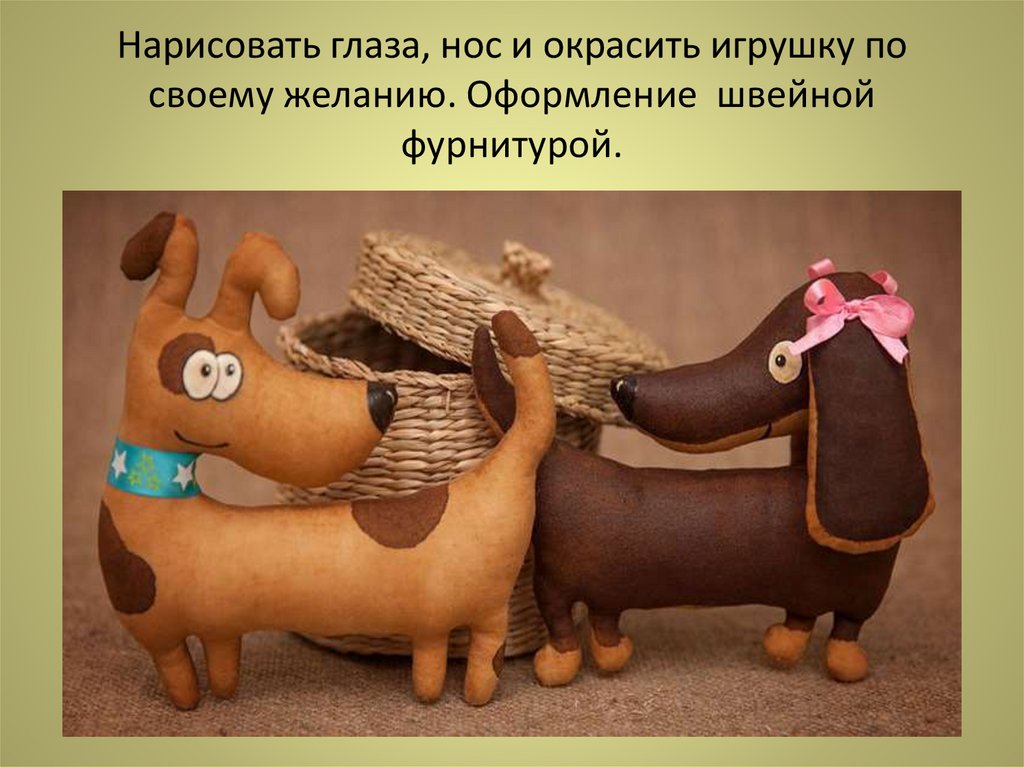 Нарисовать глаза, нос и окрасить игрушку посвоему желанию. Оформление швейной