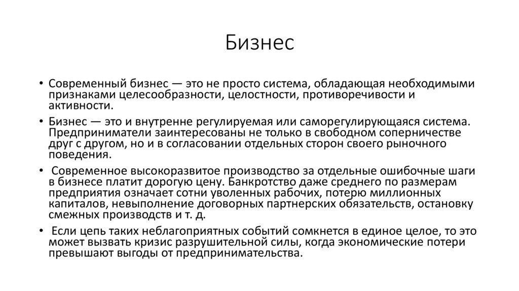 Бизнес• Современный бизнес — это не просто система, обладающая необходимыми