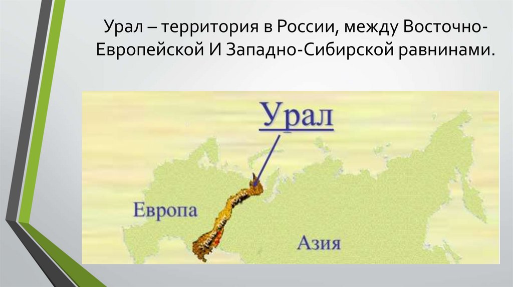 Урал – территория в России, между ВосточноЕвропейской И Западно-Сибирской равнинами.3.