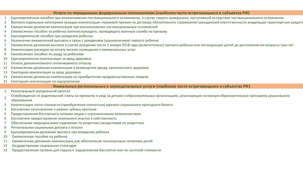 Уникальные региональные и муниципальные услуги (наиболее часто встречающиеся в субъектах РФ)