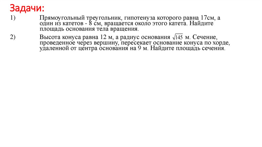 11.3.4 - решать задачи на нахождение элементов тел вращения (цилиндра, конуса, усеченного