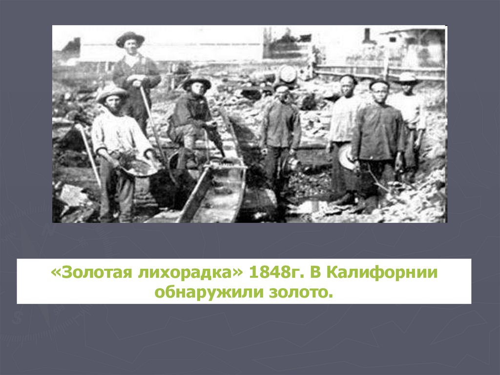 «Золотая лихорадка» 1848г. В Калифорнииобнаружили золото.