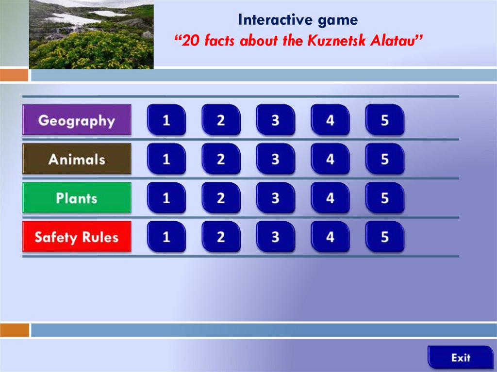 Interactive game“20 facts about the Kuznetsk Alatau”