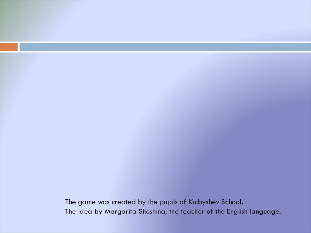 The game was created by the pupils of Kuibyshev School.The idea by Margarita Shoshina, the teacher of the English language.