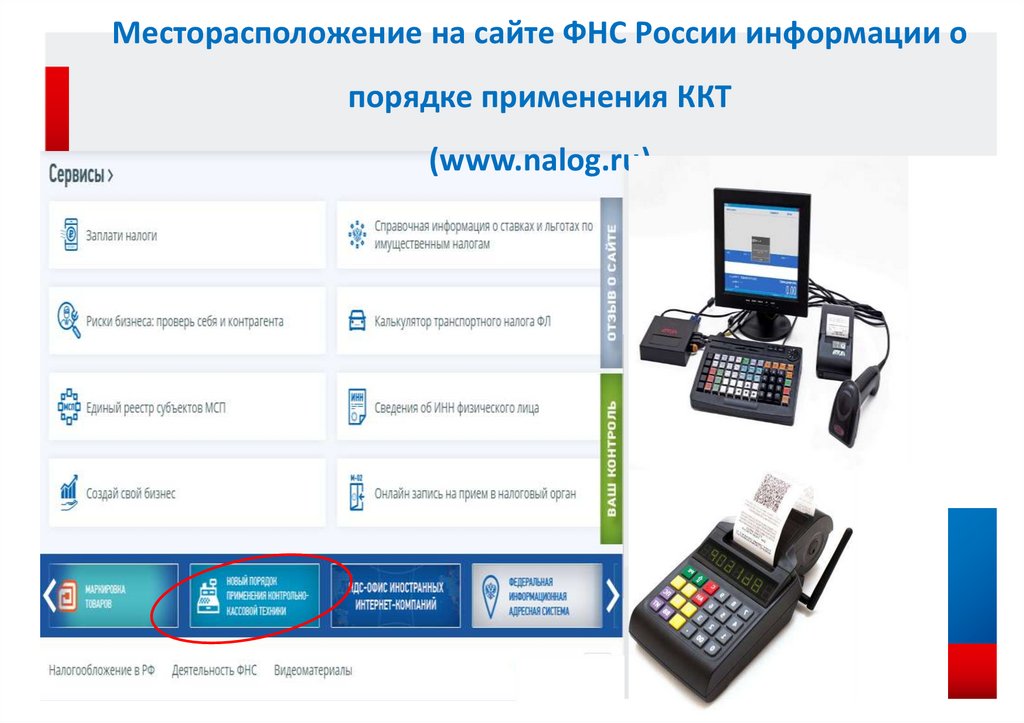 Месторасположение на сайте ФНС России информации опорядке применения ККТ