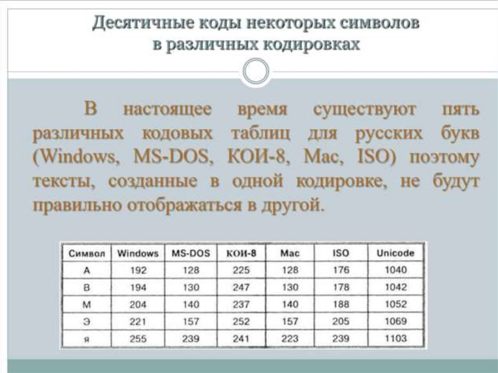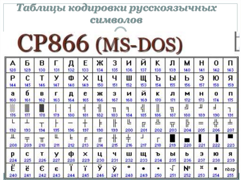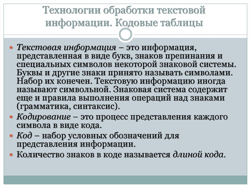 Технологии обработки текстовойинформации. Кодовые таблицы