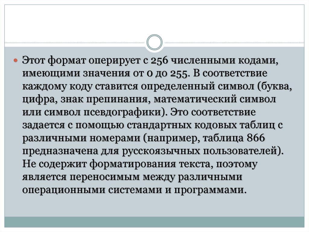 Этот формат оперирует с 256 численными кодами,имеющими значения от 0 до 255. В соответствие