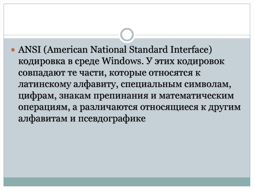 ANSI (American National Standard Interface)кодировка в среде Windows. У этих кодировок