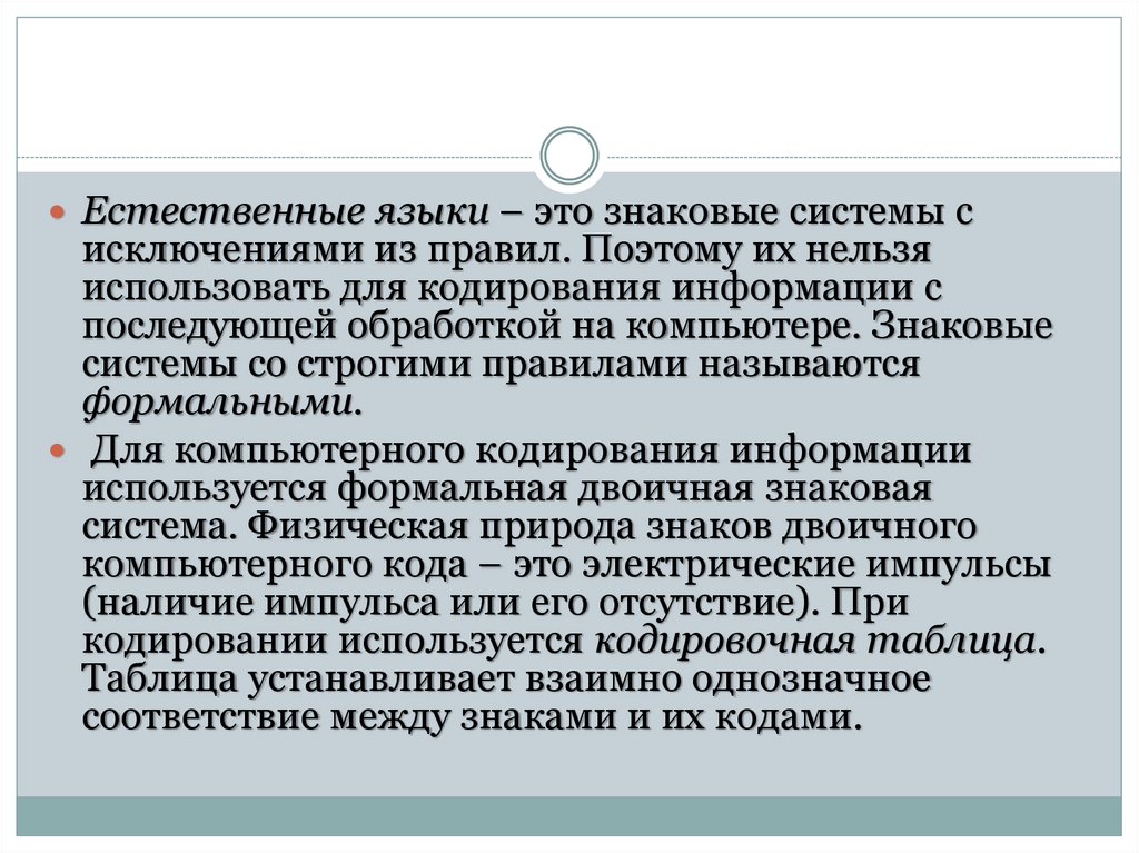 Естественные языки – это знаковые системы сисключениями из правил. Поэтому их нельзя