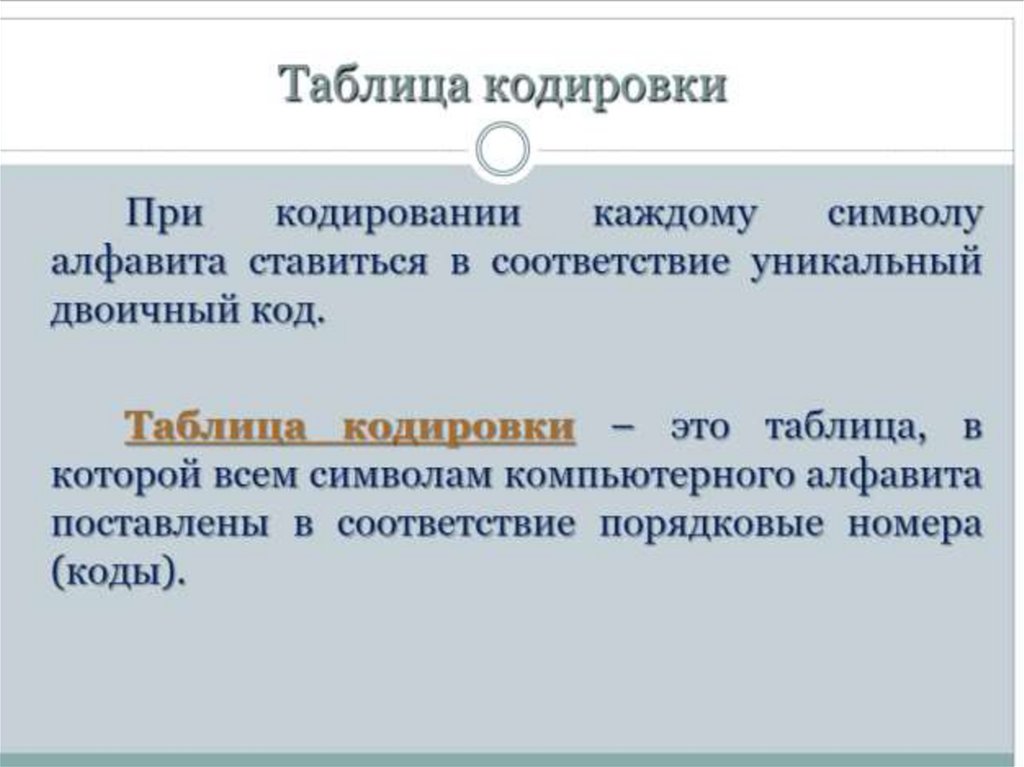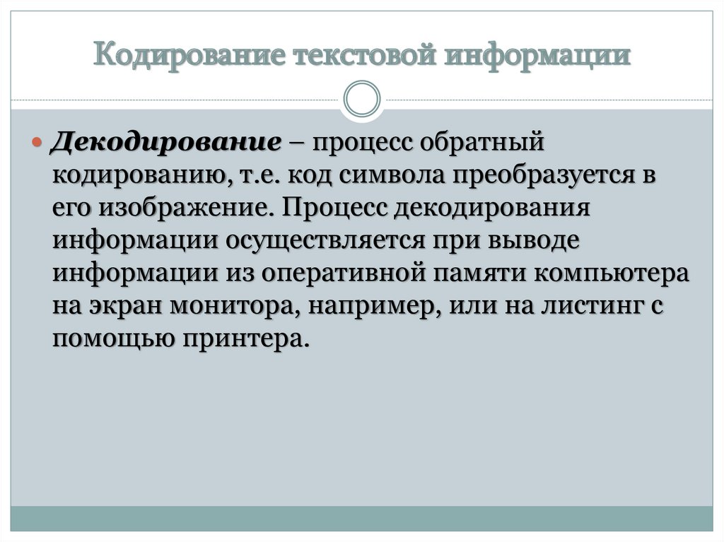 Кодирование текстовой информацииДекодирование – процесс обратный