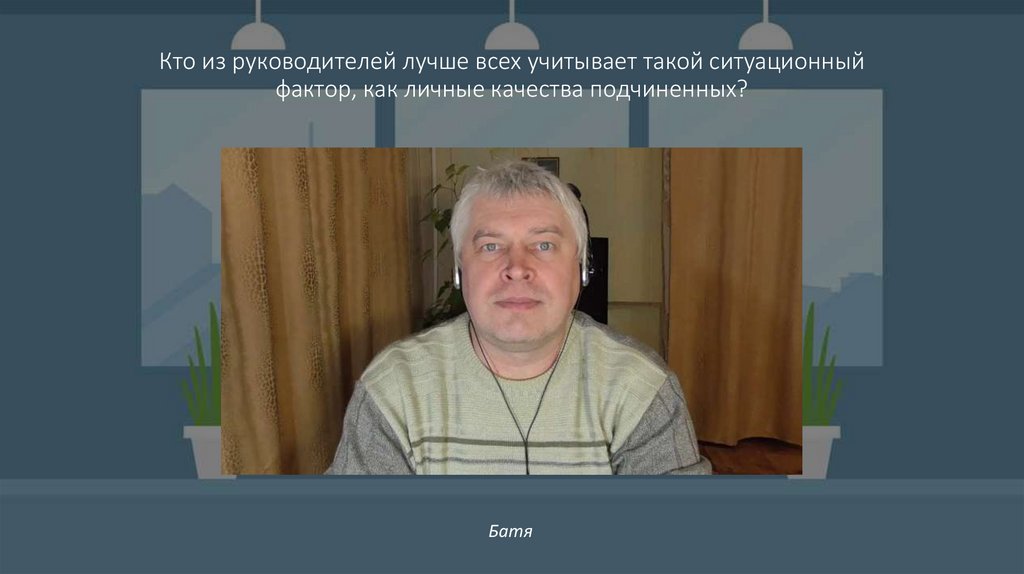 Кто из руководителей лучше всех учитывает такой ситуационныйфактор, как личные качества подчиненных?
