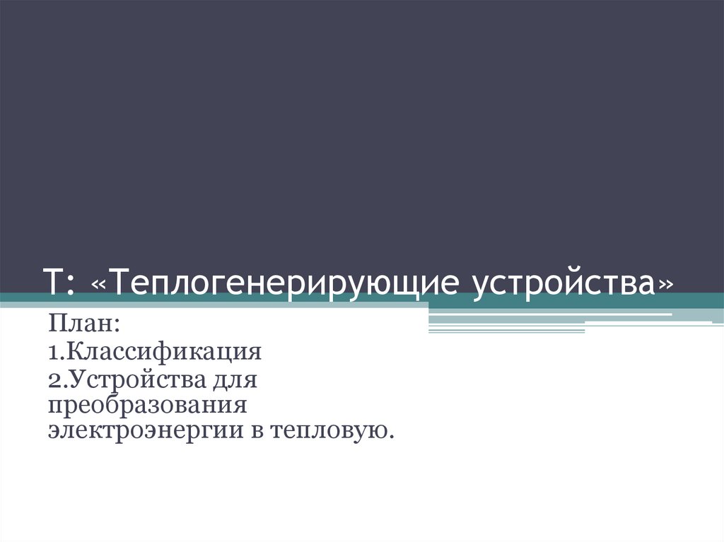 Т: «Теплогенерирующие устройства»План: