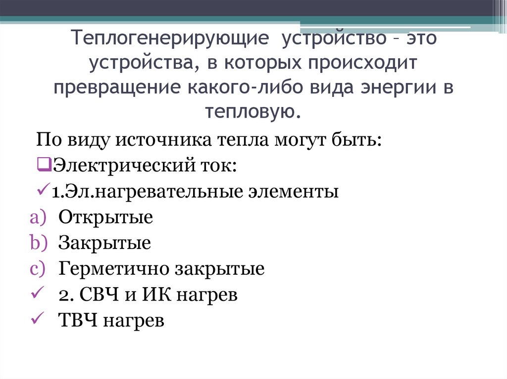 Теплогенерирующие устройство – этоустройства, в которых происходит