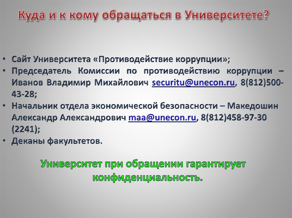 Памятка студенту СПбГЭУ по противодействию коррупции