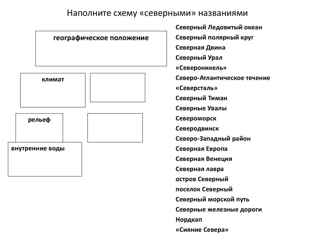 Наполните схему «северными» названиямигеографическое положение