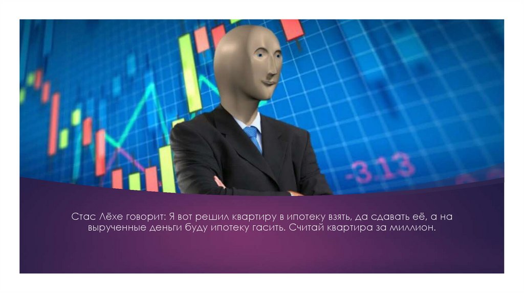 Стас Лёхе говорит: Я вот решил квартиру в ипотеку взять, да сдавать её, а на