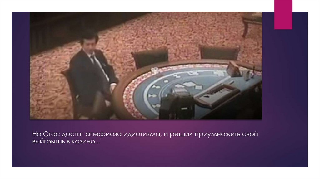 Но Стас достиг апефиоза идиотизма, и решил приумножить свойвыйгрышь в казино...