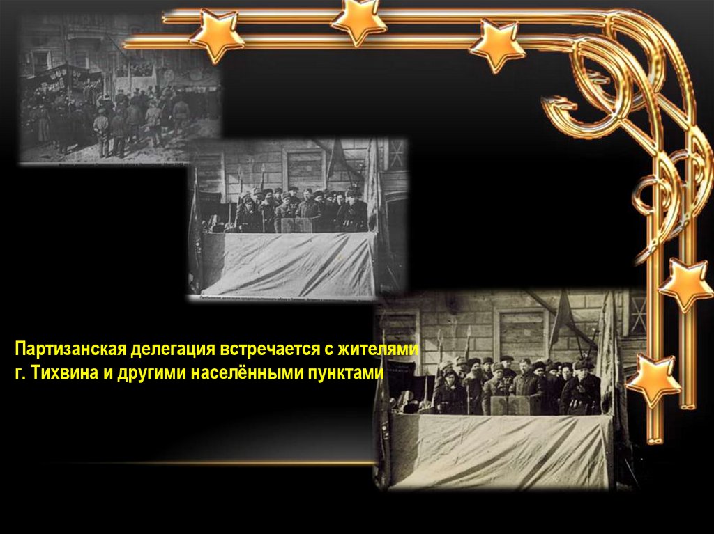 Партизанская делегация встречается с жителямиг. Тихвина и другими населёнными пунктами
