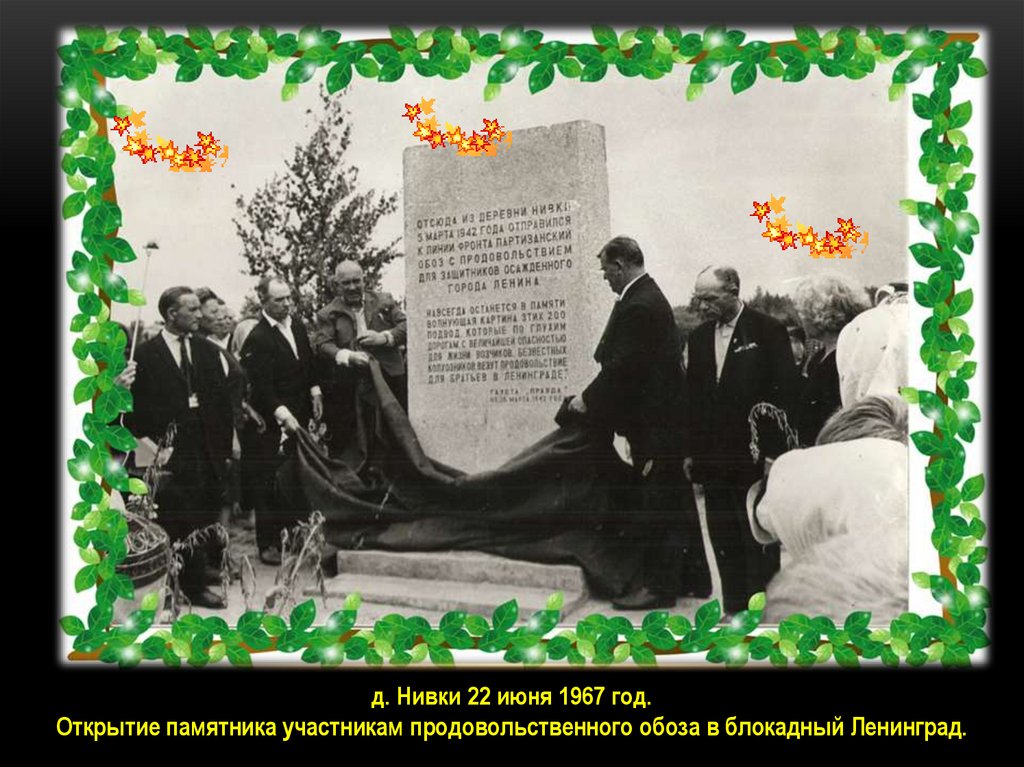д. Нивки 22 июня 1967 год.Открытие памятника участникам продовольственного обоза в блокадный Ленинград.