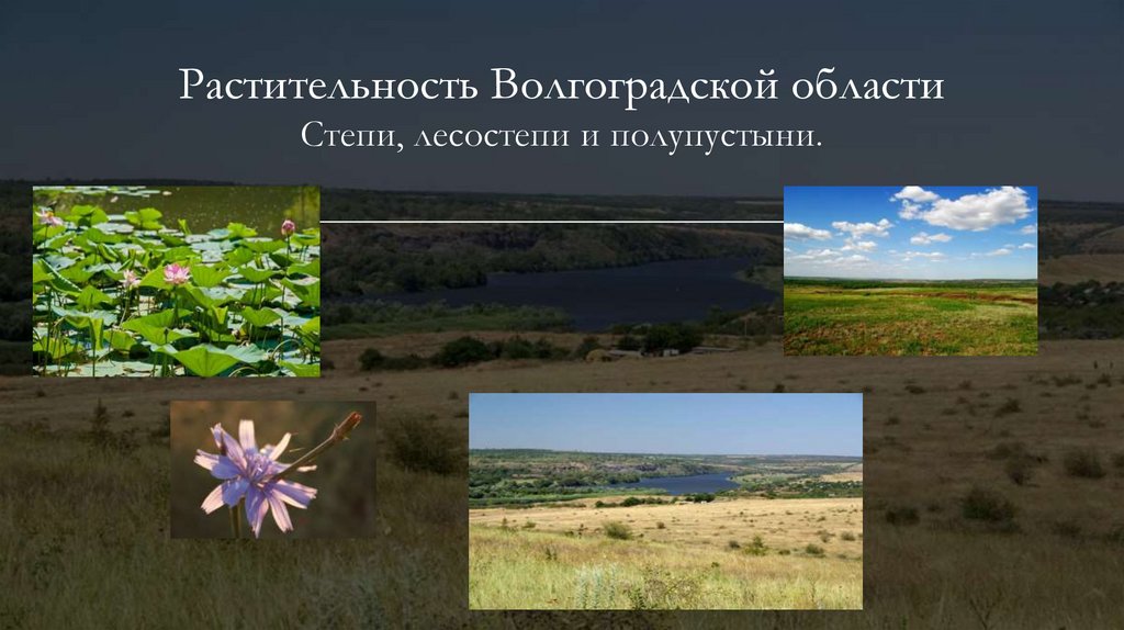 Растительность Волгоградской областиСтепи, лесостепи и полупустыни.