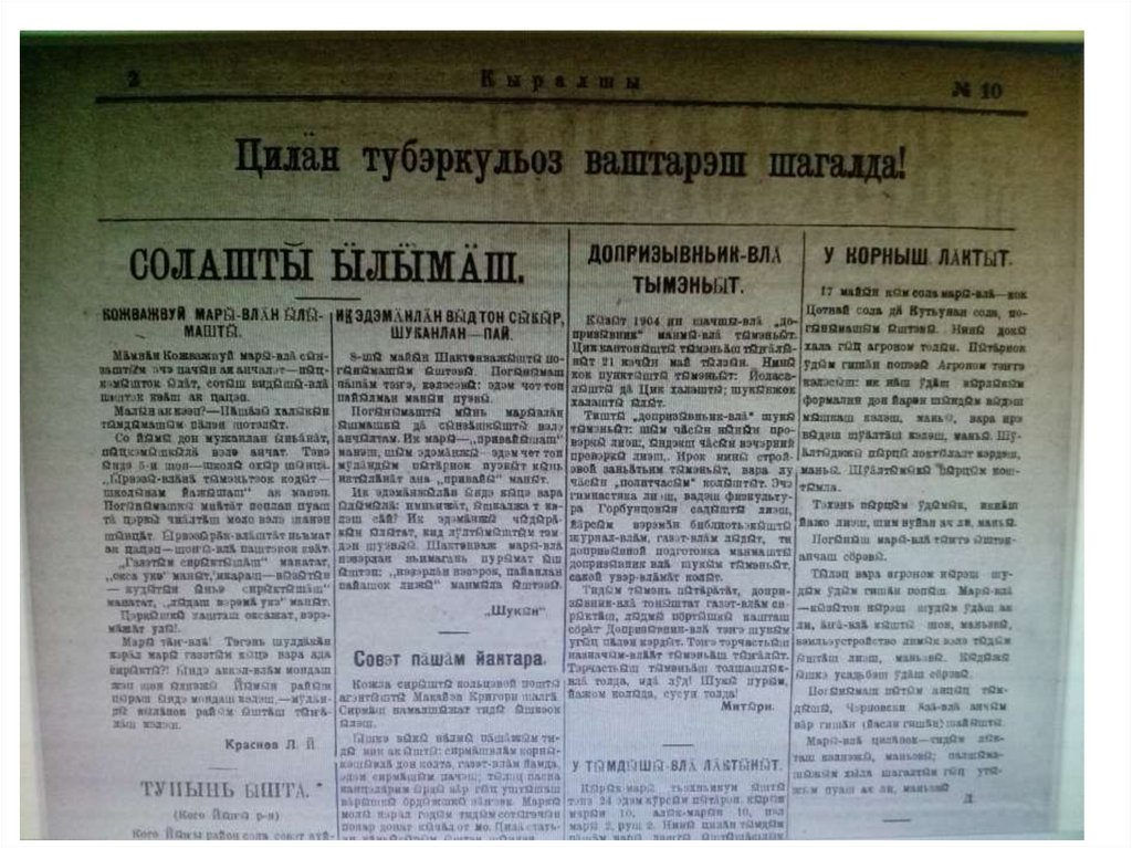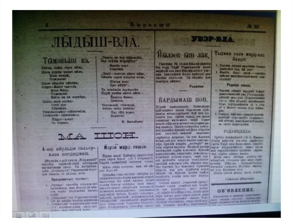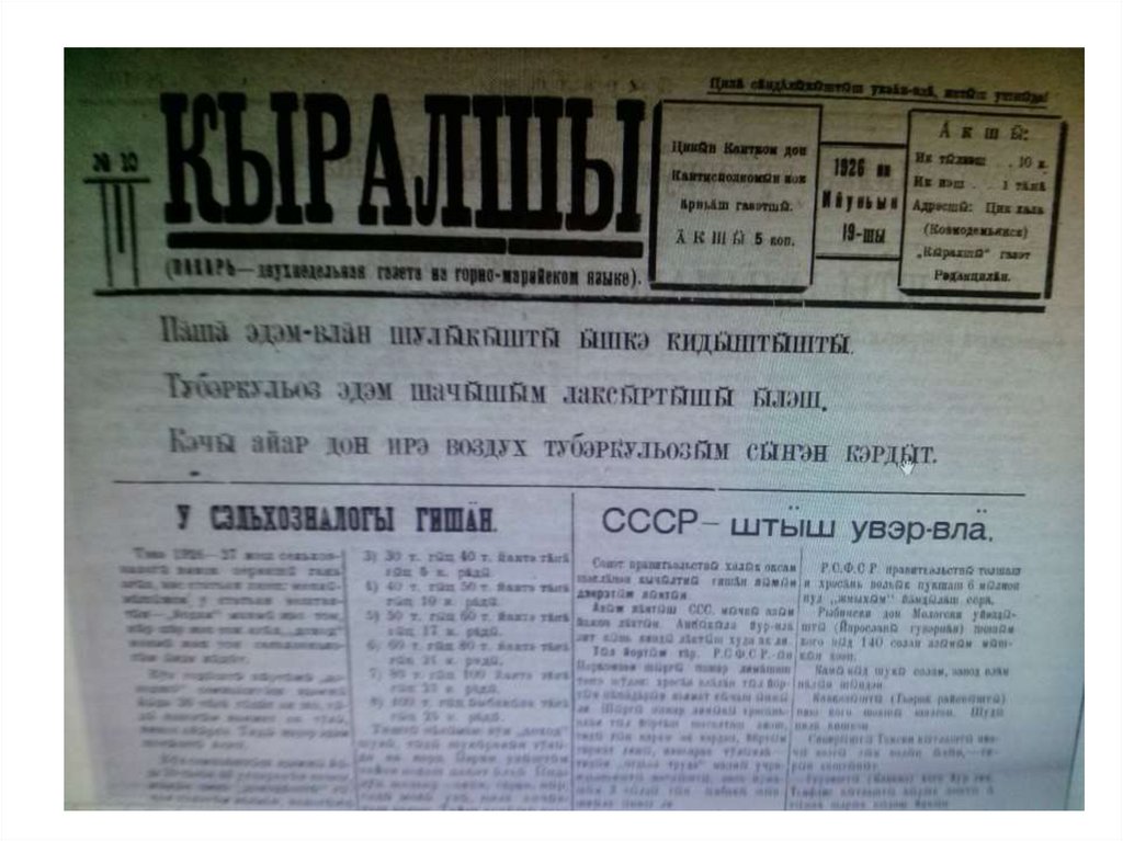 ВКП(б) Мары обком 1926 ин кырыкмары газетым мынгеш лыкташ реша.