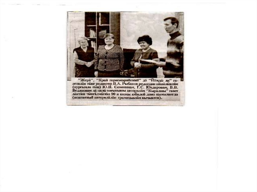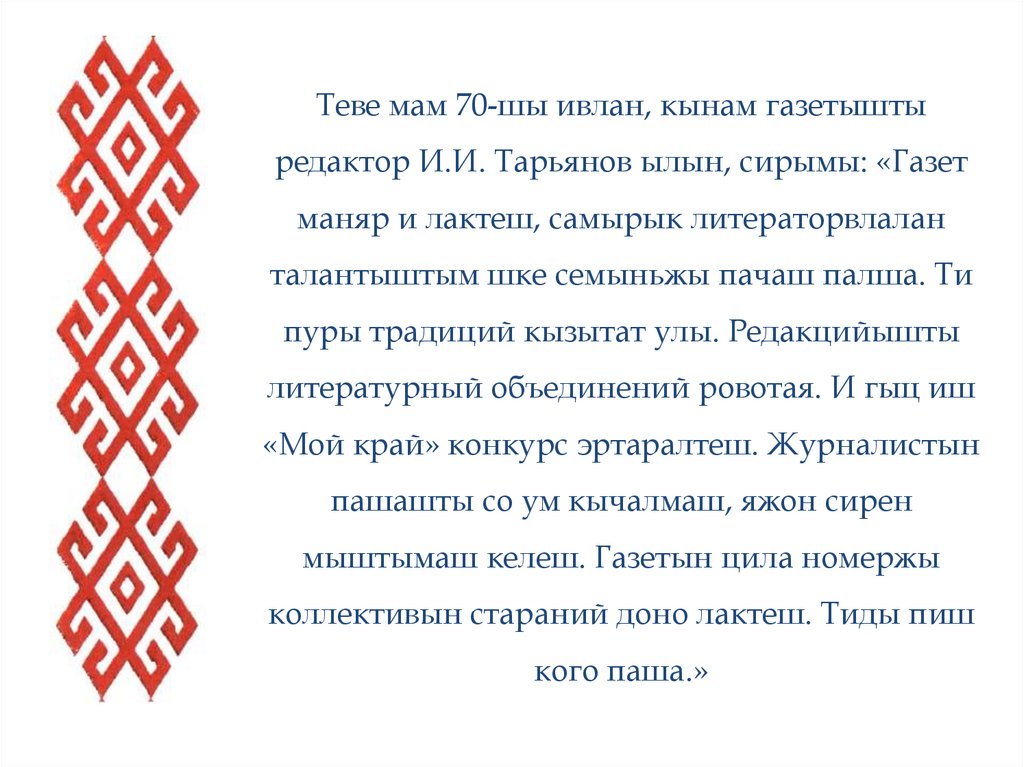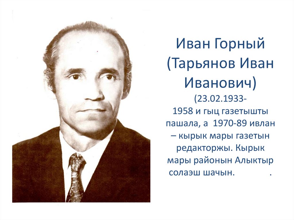Теве мам 70-шы ивлан, кынам газетыштыредактор И.И. Тарьянов ылын, сирымы: «Газет