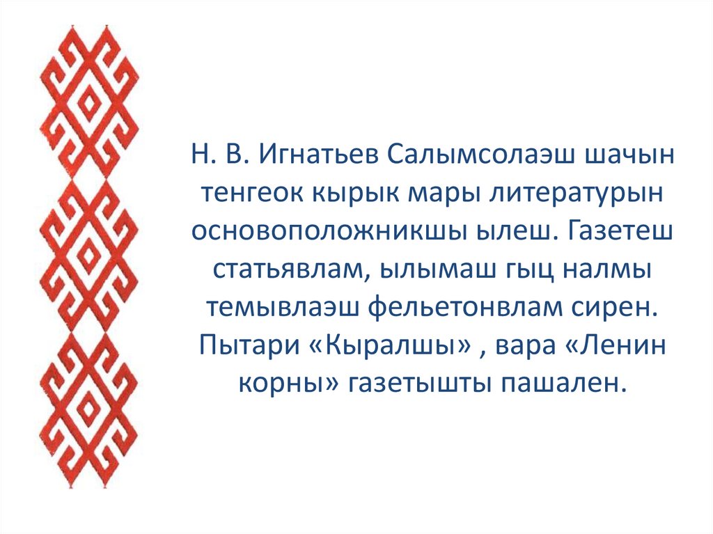 Н. В. Игнатьев Салымсолаэш шачынтенгеок кырык мары литературын