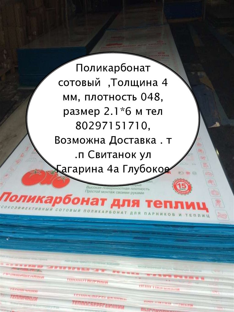 Поликарбонат сотовый для теплиц. Возможна доставка, п. Свитанок