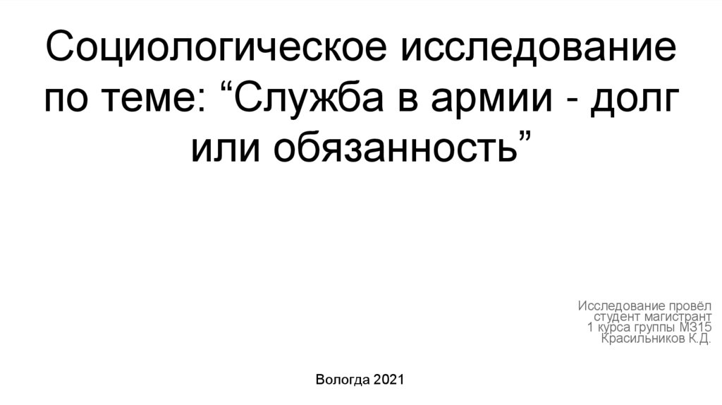 Социологическое исследованиепо теме: “Служба в армии - долг