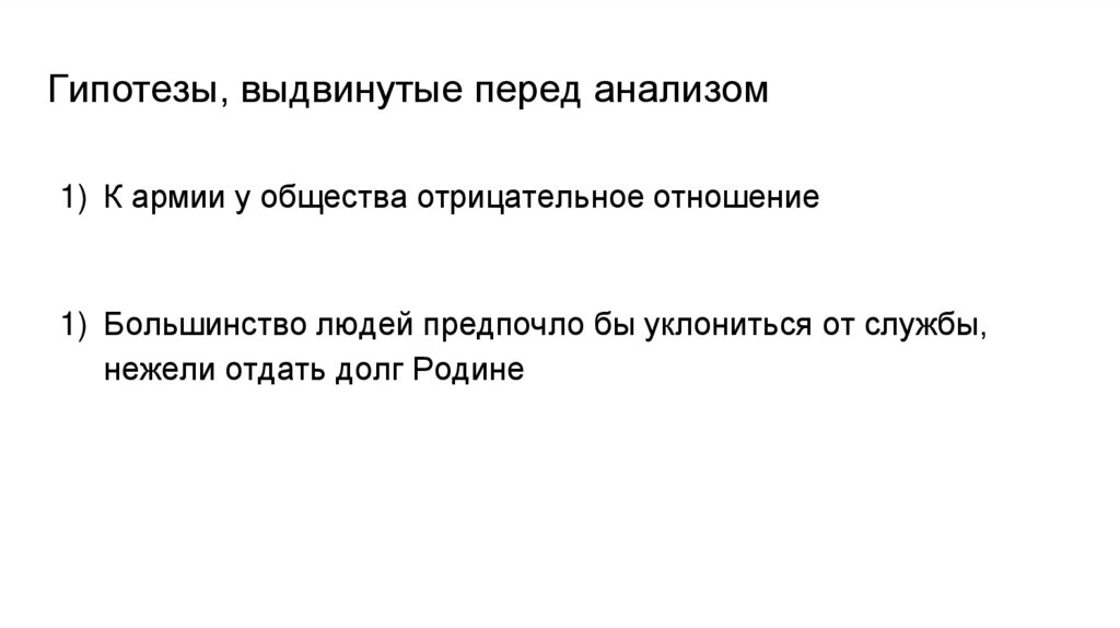 Гипотезы, выдвинутые перед анализом1) К армии у общества отрицательное отношение