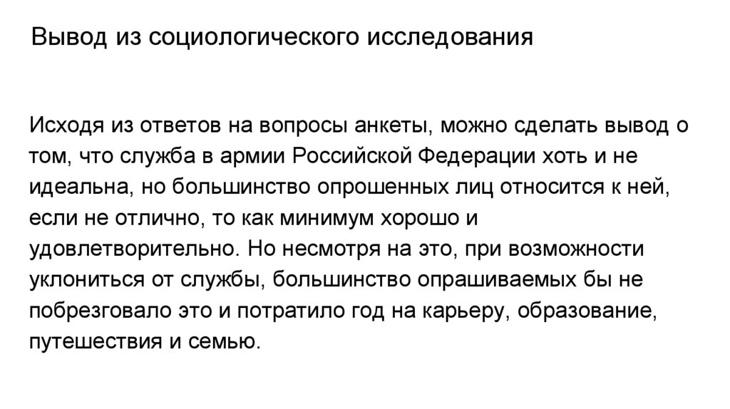 Вывод из социологического исследованияИсходя из ответов на вопросы анкеты, можно сделать вывод о