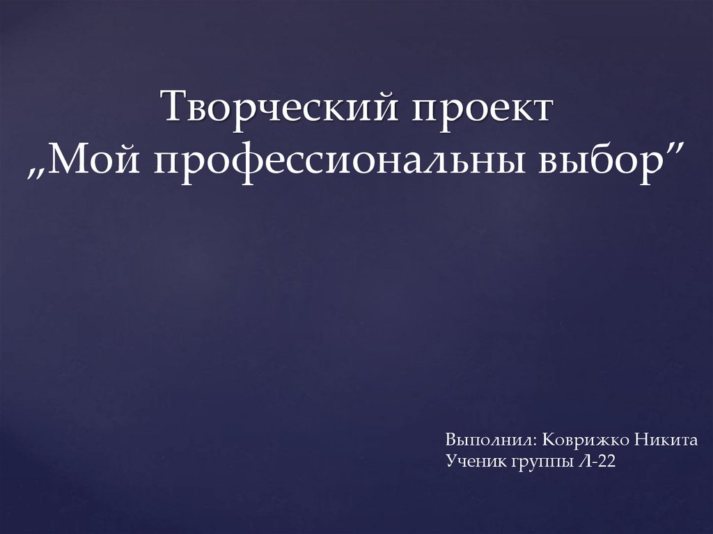 Творческий проект„Мой профессиональны выбор”