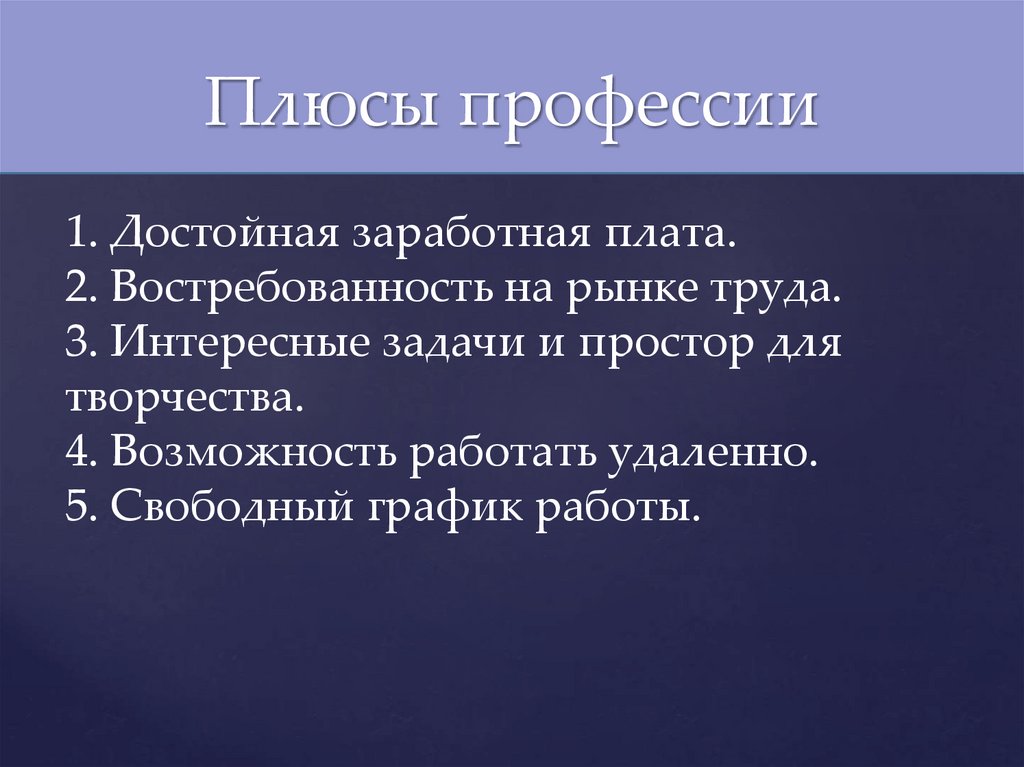 Плюсы профессии1. Достойная заработная плата.