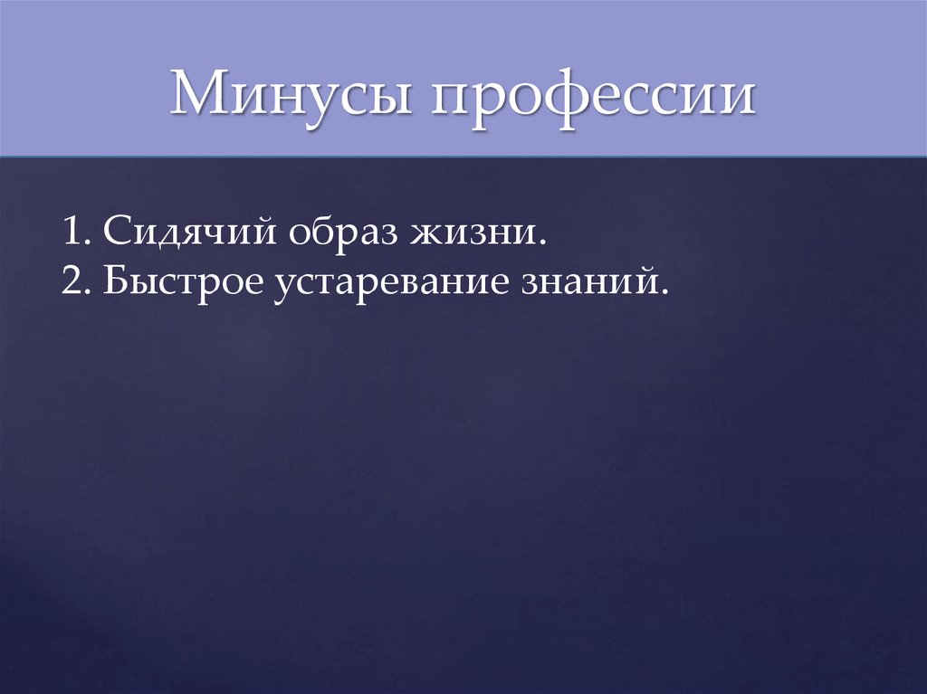 Минусы профессии1. Сидячий образ жизни.